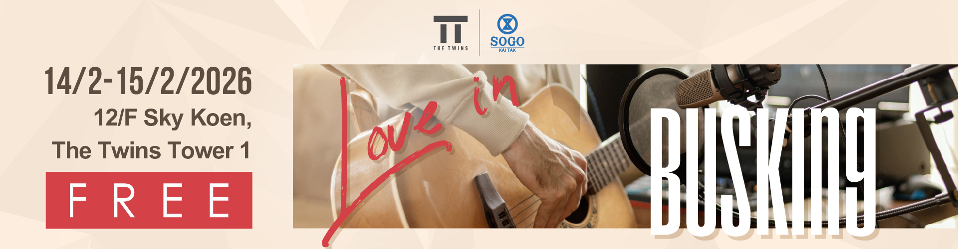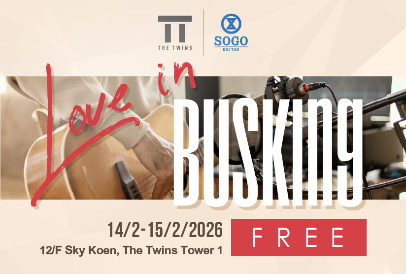 Valentine’s Day busking dedication performance! Make this special moment unforgettable by dedicating a love song to someone special. From 14/2 to 15/2/2026, customer can receive a song card* by dining at designated restaurants^. Choose a song from the list and write your message, head to the Sky Koen on 12/F and let music convey your love!