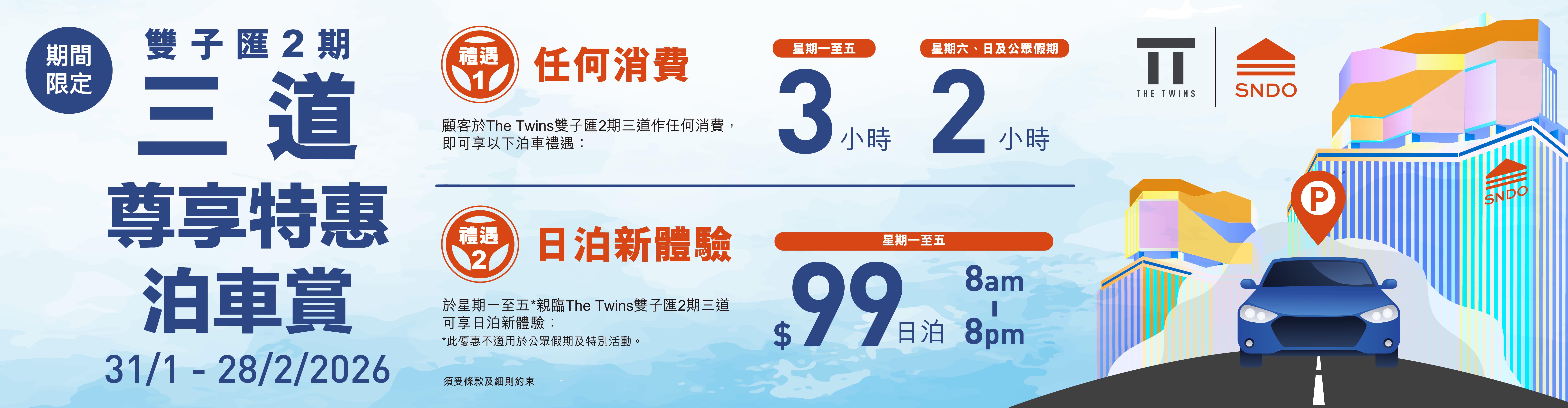- Privilege 2 applies only to vehicles parked between 8:00am and 7:59pm from Monday to Friday (excluding Saturdays, Sundays, public holidays, and special event days). If the user enters before 8am or exits after 8pm at The Twins Tower II car park, additional hourly parking fees will be charged at the standard rate. The day parking fee will be deducted from the Octopus card, VISA, or Mastercard (as applicable) used upon entry when the vehicle exits the car park.