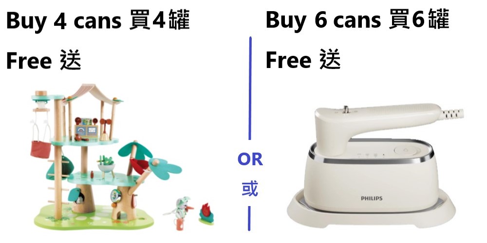 Free gift offer: Upon purchase of 4 cans FRISO PRESTIGE® Formula Milk (Stage 2/3/4) at SOGO eStore, receive a complimentary Hape Forest Keepers Headquarter 1pc (Value $539); OR puchase of 6 cans, receive a complimentary Philips Handheld Steam Iron 1pc (Value $798).