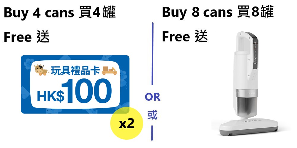 Free gift offer: Upon purchase of 4 cans FRISO® GOLD Formula Milk (Stage 2/3/4) at SOGO eStore, receive a complimentary Toys"R"Us $100 Gift Voucher 2pcs; OR puchase of 8 cans, receive a complimentary IRIS OHYAMA IC-FAC11 Ultra-light Dust Mites Removing Mattress Cleaner 1pc (Value $998).