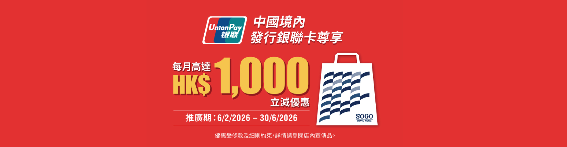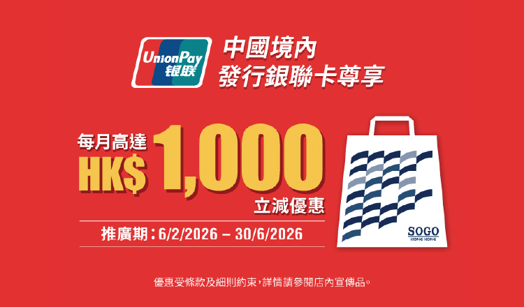 優惠受有關條款及細則約束。詳情請瀏覽銀聯網頁或參閱有關店內宣傳品。