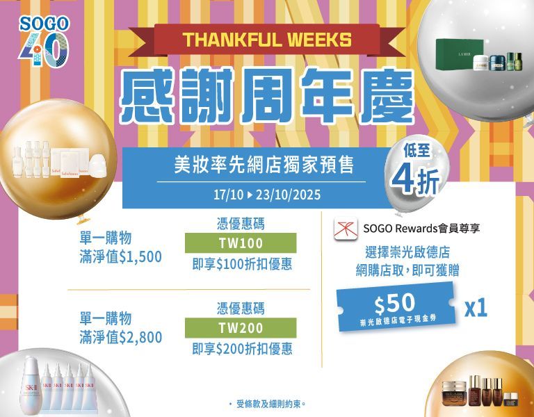 只適用於指定化妝護膚品牌、童嬰用品及其他指定商品,詳情請參閱個別商品版面。